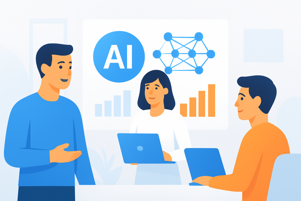 Risikodruck steigt: Fehlentscheidungen durch unklare Datenquellen, Bias oder mangelnde Kontrolle wirken direkt auf Marke, Compliance und Kundenvertrauen. Effizienzdruck bleibt hoch: Teams sollen produktiver werden, ohne Qualitäts- oder Reputationsverluste. Führung verändert sich: Leitungsrollen verschieben sich von „Freigeben“ zu „Rahmen setzen und Wirkung steuern“.
